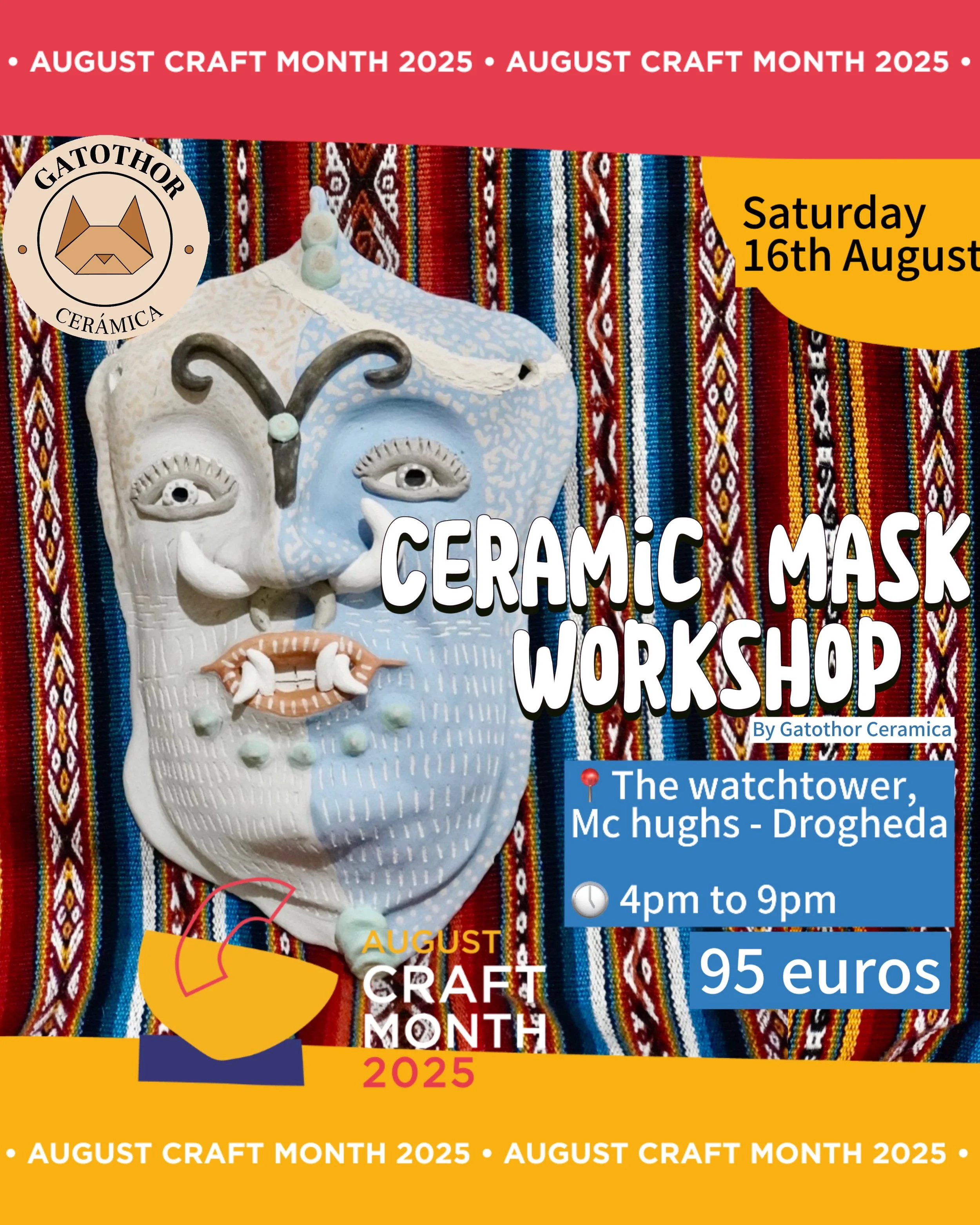 August 16th - Ceramic Mask Workshop - The Watchtower, Mc Hughs