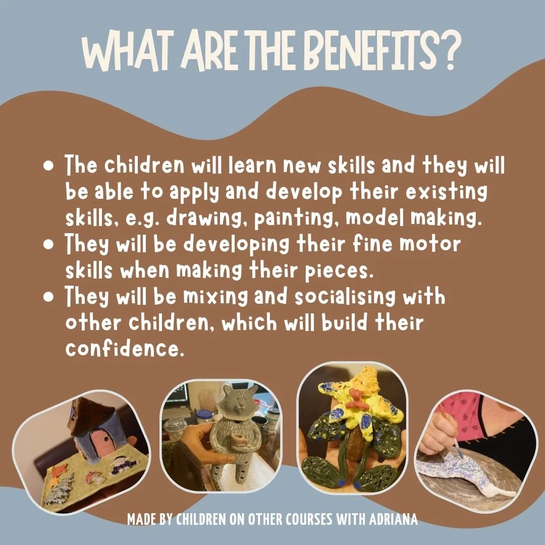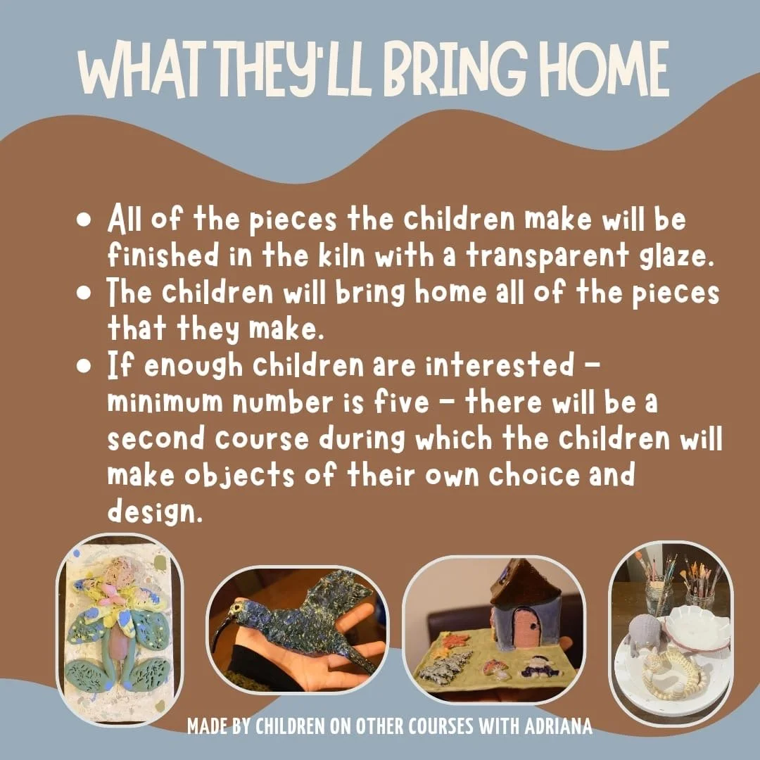 Each day, the children will learn the skills for making Beautiful pottery. The core techniques are Pinching, Coiling, and slab building.